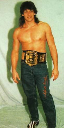 In the dying days of the USWA the people in the company were throwing anything against the wall to see what would stick. Accordingly it was only a matter of time before they put the gimmicks of “Macho Man” Randy Savage, The Ultimate Warrior, Ric Flair and Hulk Hogan in a blender and gave it to someone. It is unfortunate that the guy chugging down the frothy mixture was this obese lug. Scratch that “unfortunate.” This gimmick would have been “unfortunate” no matter what. Instead this uncoordinated whale taking on the gimmick can best be called tragic.
