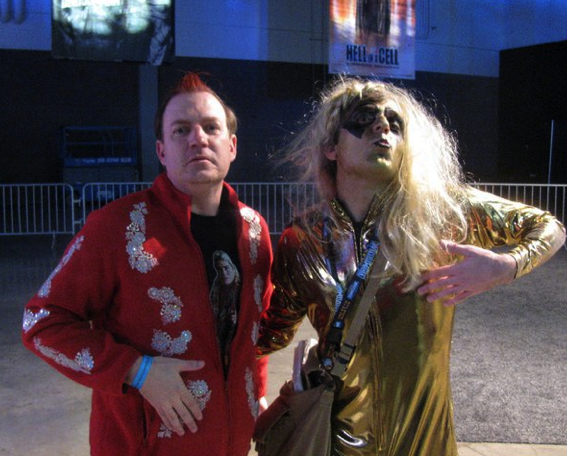 If pictures like this and this are any indication then The Great Muta and Goldust should be two of the most popular costumes for tonight’s festivities. Perhaps even more unusual than our continuing tradition of having young children go to the houses of strangers at night and ask for candy is that Muta and Goldust have actually wrestled before. It occurred in a tag team match for AJPW. On one side the team of Muta and Yoshihiro Tajiri made sense given their fondness for mist. However, their opponents are a puzzling combination. The best reasoning I can come up with is that Goldust and Hakushi aka Jinsei Shinzaki ended up in the same prison and Goldust was traded to Hakushi by the prison alpha male for a pack of Marlboro reds.